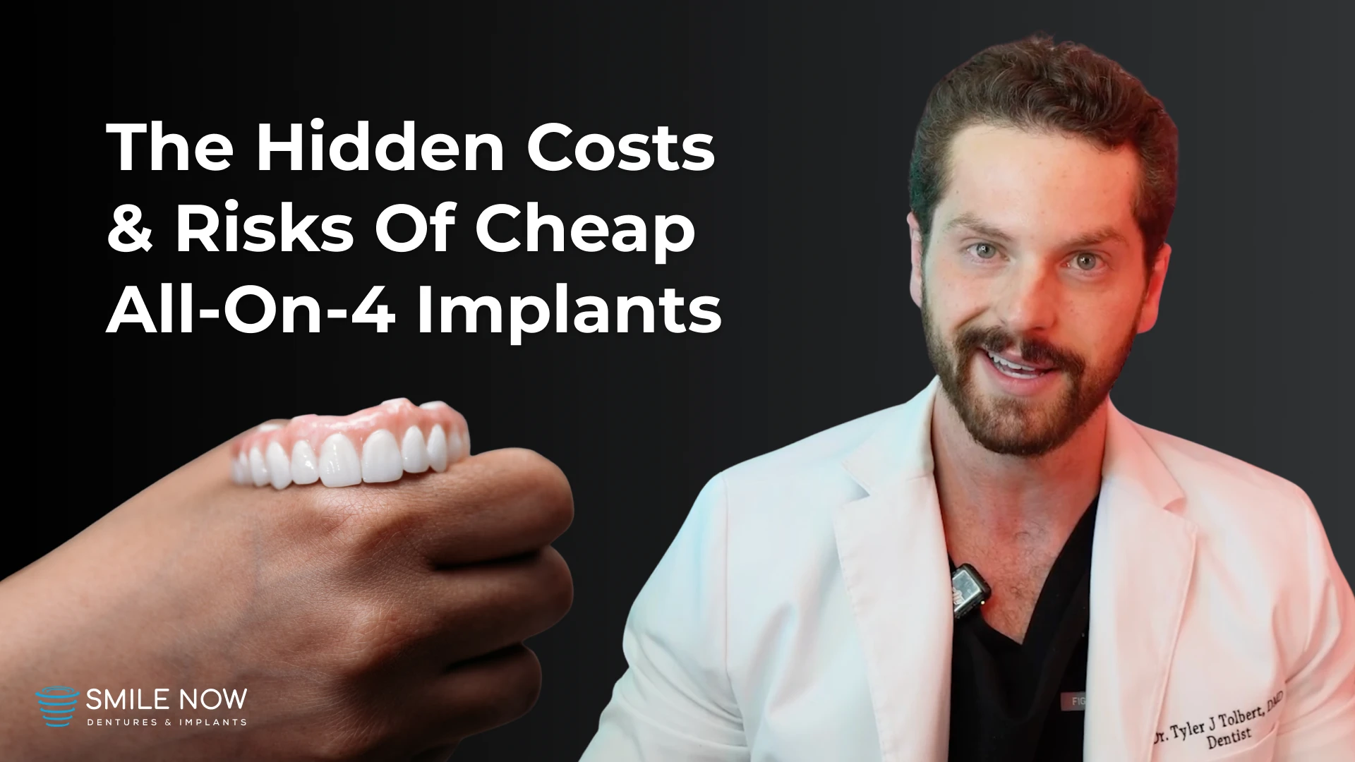 In the video above, Dr. Tyler J. Tolbert of Smile Now Dentures and Implants discusses a tempting offer many patients see online: full arch All-On-4 dental implants for as low as $8,000. While the promise of affordable, cheap all on 4 dental implants can be alluring, especially when it involves traveling to another country, it’s crucial to understand the hidden risks and costs. Before you consider booking a flight for dental tourism, this is a reality check on what those “too-good-to-be-true” deals really entail, the risks of traveling, and why local care is the better long-term decision.